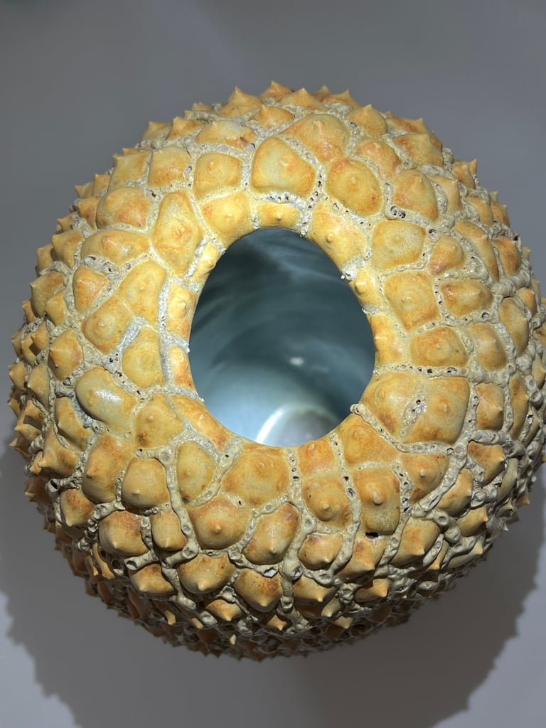 This moody, prickly vase is functional but function follows form in this case. Handle with care.